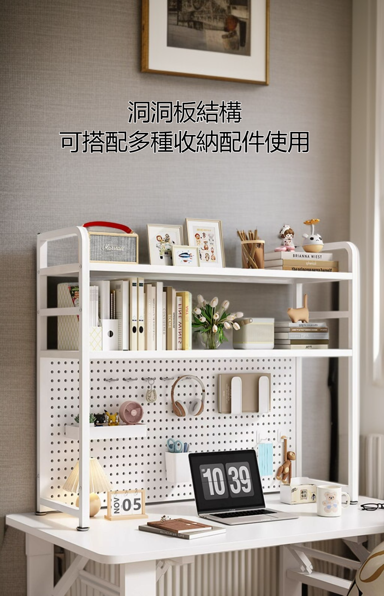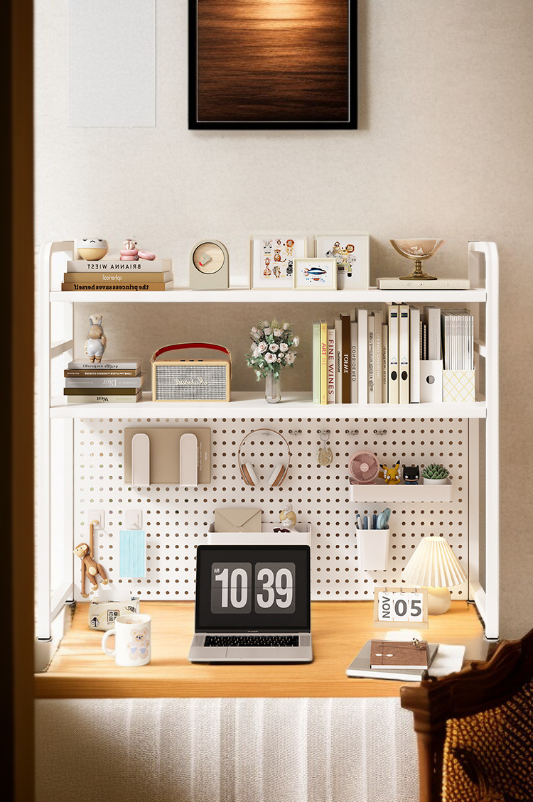 多層洞洞板桌面置物架,靈活收納,空間利用率高,適合辦公及居家,多功能設計,輕鬆整理文具與小物。